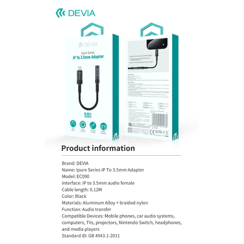 Adattatore Audio iPure da Lightning a presa Jack 3,5mm