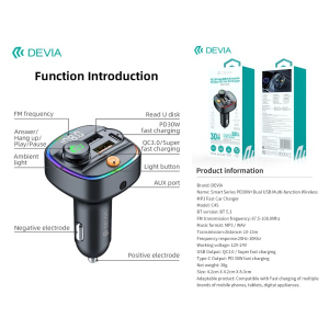 Vivavoce e Carica 30W per auto FM Bluetooth 5.3 con lettore Mp3 e Pendrive